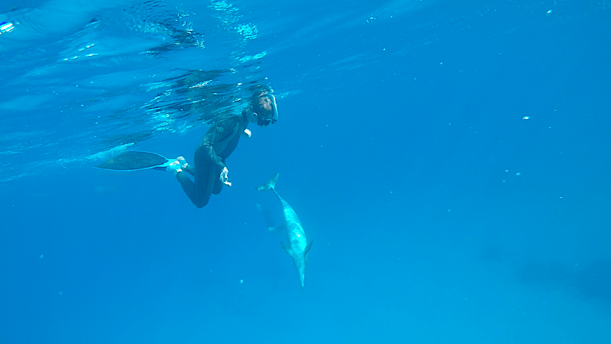 Il me semble que toutes les études scientifiques, éthologiques ne peuvent déroger à une règle, c’est justement qu’il n’y a pas de règle unique. Chaque dauphin comme chaque animal, a également sa propre histoire, son chemin et sa personnalité unique. Et c’est ce qui fait la magie d’une rencontre et le respect de la vie, pouvoir être surpris par un moment de pure connexion comme une évidence.